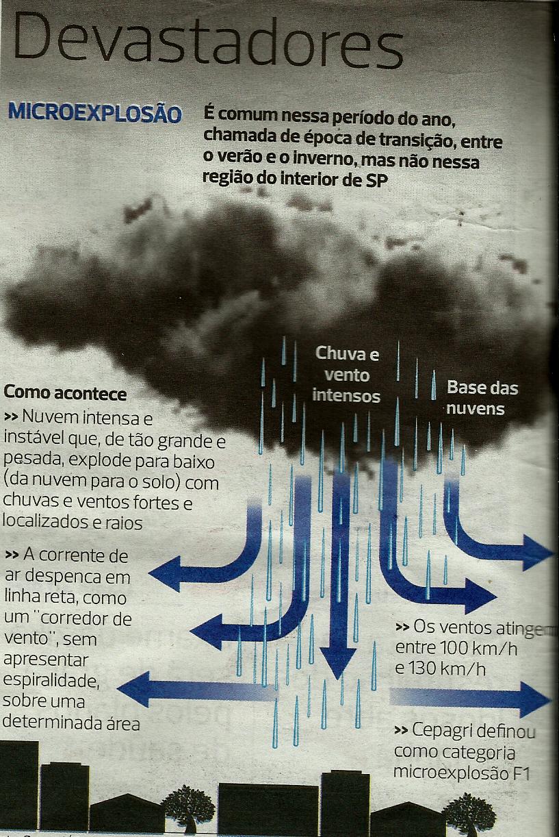 Boa parte do interior de S.Paulo, teve um domingo que nada ficou devendo ao Caribe e Estados Unidos. Nas imagens, é possível se saber mais sobre os fenômenos chamados de MICRO EXPLOSÃO e TORNADO, que atingiram as cidades de Jarinu, Piracicaba, Capivari, Pirassununga, S.Carlos, Sorocaba, e Campinas, onde o (Cepagri), classificou o temporal ocorrido em JARINU, de 27 mil habitantes, de micro explosão quando os ventos atingem entre 100km/h e 130km/h.